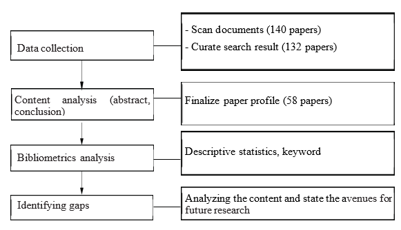 To build a systematic and comprehensive overview of the impact of CSR on job performance, the authors employed a two-tier analysis, which includes bibliometric and content analysis methods. Content analysis complements the quality of the research, as bibliometric indicators alone are insufficient for evaluation (Aktoprak & Hursen, 2022; Jiddi & Ibenrissoul, 2020). The combination of both qualitative and quantitative approaches in the review provides an extensive intellectual structure for the research field (Bhatt et al., 2020). Specifically, the bibliometric method uses statistical approaches to analyze document information such as authors, keywords, and references, offering an overview of past and present developments and predicting future trends of research topics (De Bakker et al., 2005; Nicolaisen, 2010). Meanwhile, content analysis is a qualitative method used by researchers to gain an in-depth understanding of the research topic, uncover latent characteristics, and draw accurate and reliable conclusions (Bhatt et al., 2020; Cheng et al., 2018).