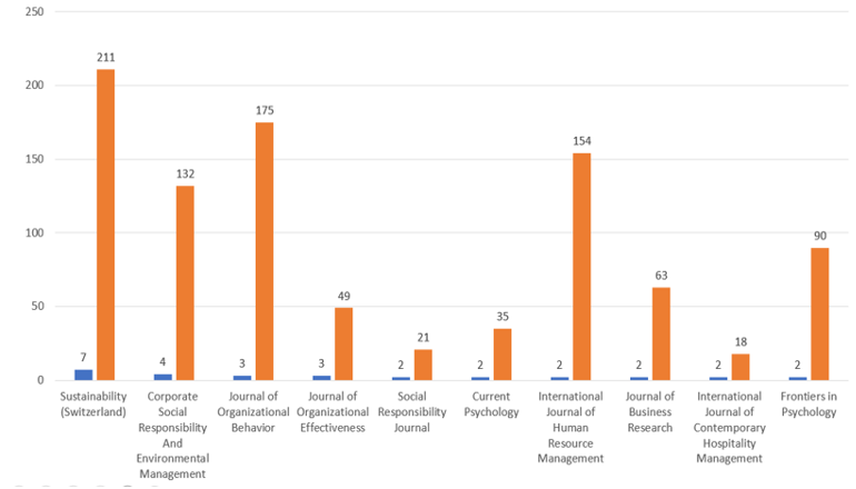Research on the relationship between CSR and job performance has been conducted in various countries across different continents. Among them, the leading countries in terms of research volume include the United States, South Korea, China, and the United Kingdom. European countries with relatively large research contributions include Portugal, Greece, and Italy. In addition, in Asia, three other prominent countries with a considerable number of studies are India, Pakistan, and Vietnam.